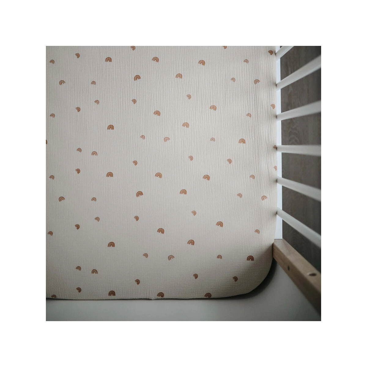Mushie Spannbezug Krippe Musselin Rainbow